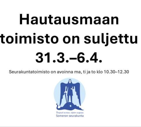 Hautausmaan toimisto on suljettuna 31.3.-6.4.2025