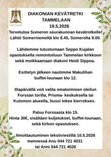 Tervetuloa Someron seurakunnan kevätretkelle! Lähtö Somerniemeltä klo 8.45, Somerolta 9.00.