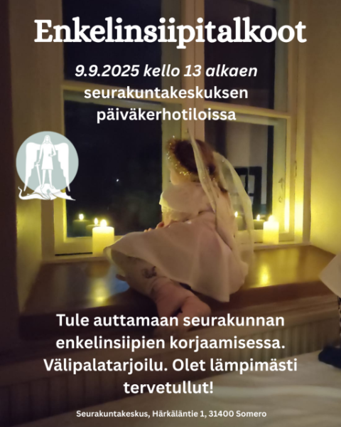 Tervetuloa enkelinsiipitalkoisiin! Korjataan yhdessä seurakunnan enkelinsiivet kuntoon! Rupatellaan yhdessä ja syödään välipalaa. Olet sydämellisesti tervetullut!