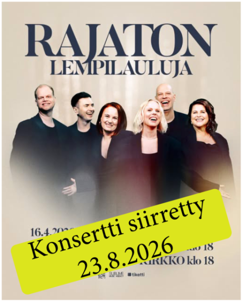 Torstaille 16.4.2026 suunniteltu Rajaton -Lempilauluja - konsertti siirtyy elokuulle järjestäjän ilmoituksen mukaan tuotannollisista syistä.