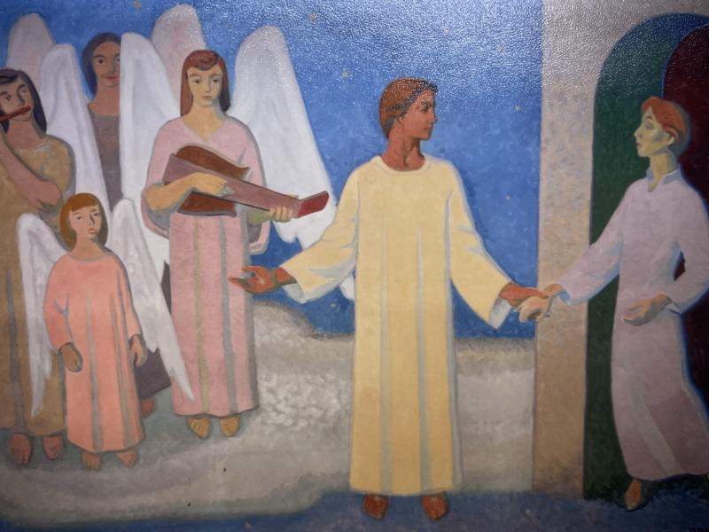 Siunauskappelin seinällä on taitelija Onni Ojan fresko Paratiisin portilla vuodelta 1955. Freskossa on kuvattuna paratiisiin saapuminen. vaaleanpunaiseen kaapuun pukeutunut miesvainaja saapuu kivisen portin läpi paratiisiin jossa häntä ovat vastassa Pietari ja enkelit.
